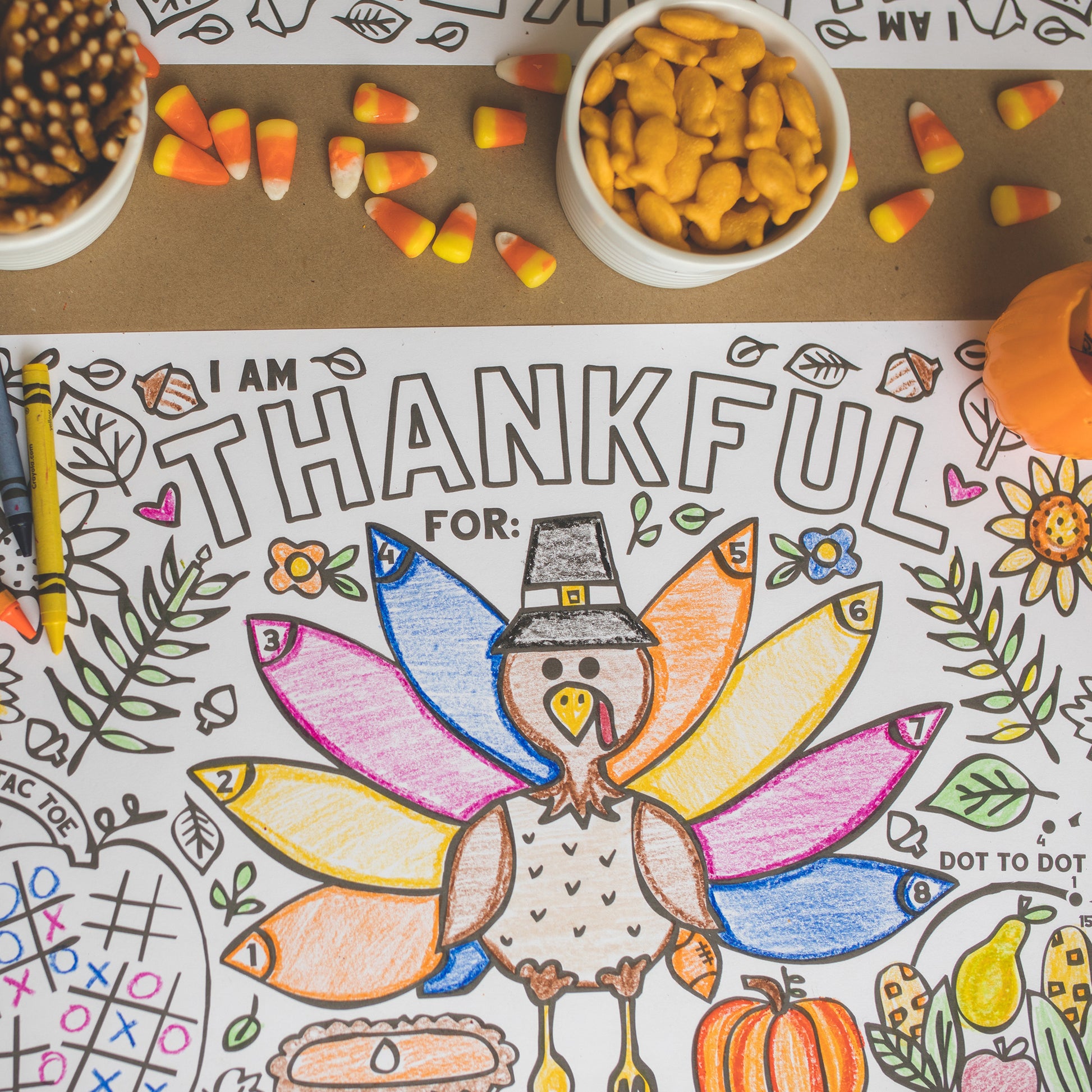 - ENTERTAINING FUN - Keep kids engaged and having fun this Thanksgiving! They can custom color their place mats plus there are special activities and games like Tic Tac Toe, hidden pictures and connect the dots to keep children entertained for hours.