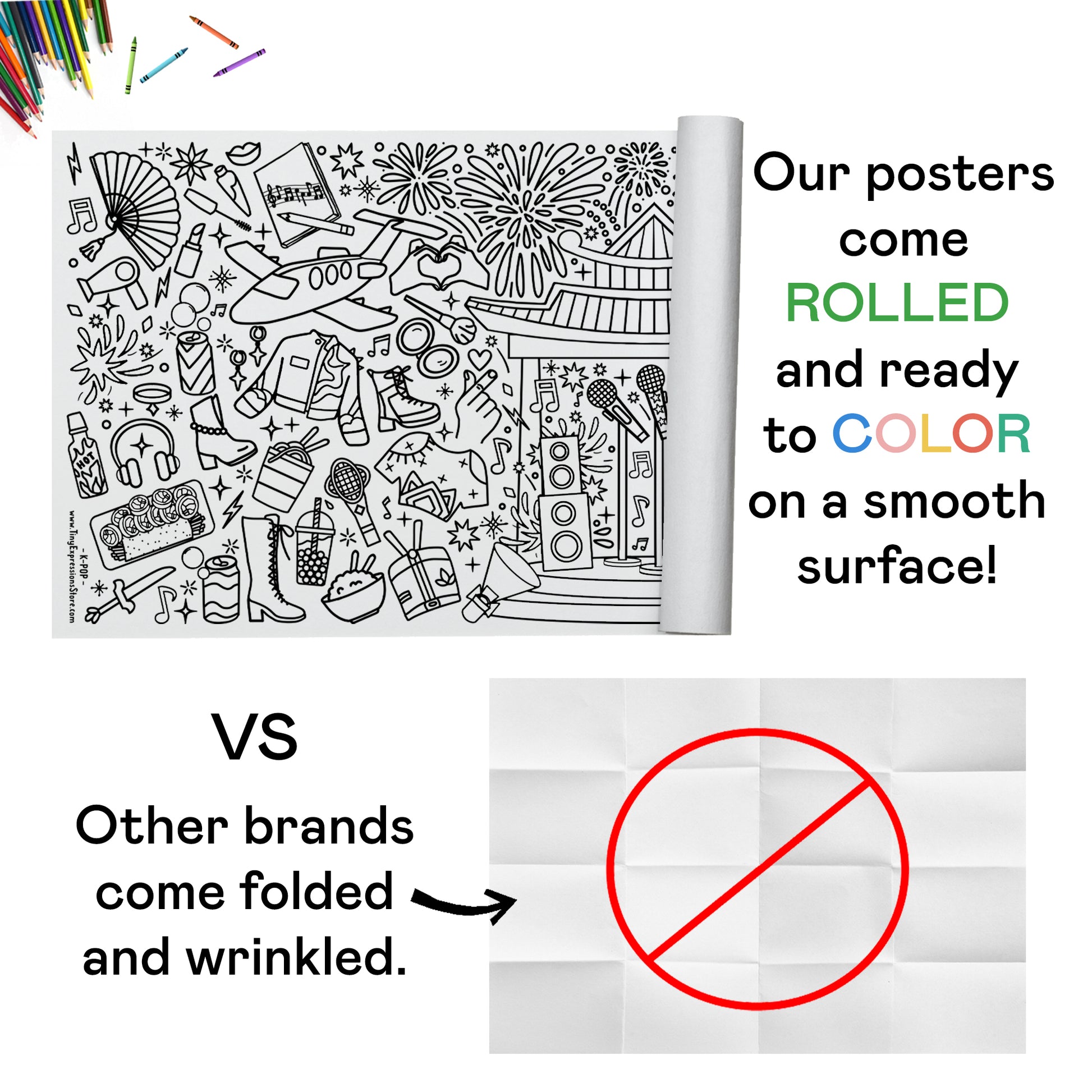 K-POP FUN - Kids who love K-Pop will love this coloring banner! They can custom color or paint this adorable HUGE banner and be entertained for hours. Whether you're throwing a K-Pop themed party, or looking for a screen-free activity for rainy days at home, this banner will be a hit!