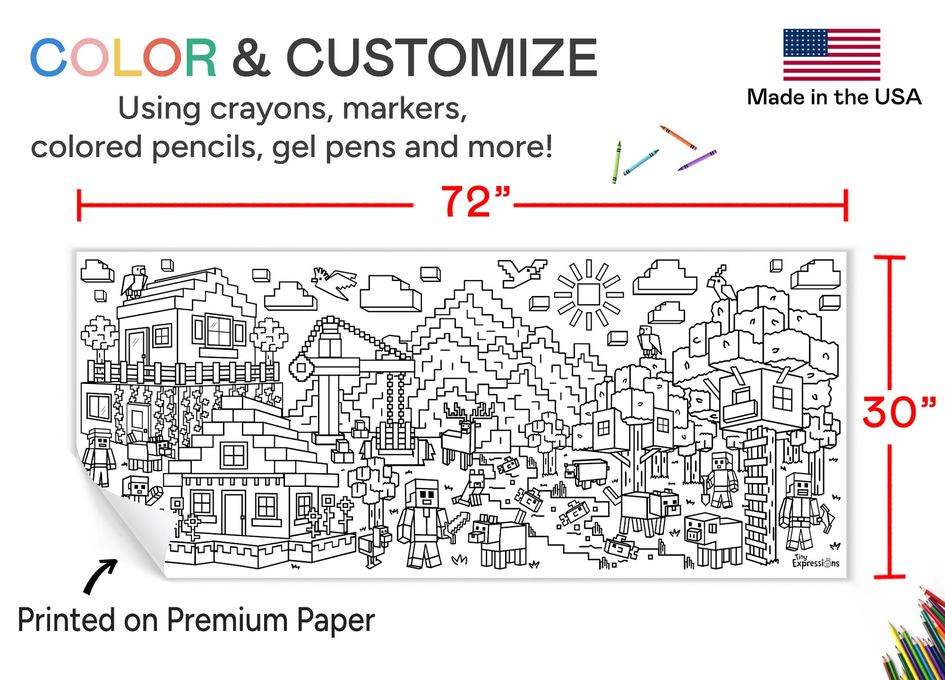 MINE BLOCKS FUN - Keep kids engaged and having fun at home, in the classroom, or during a birthday party! They can custom color or paint this adorable HUGE banner and be entertained for hours.