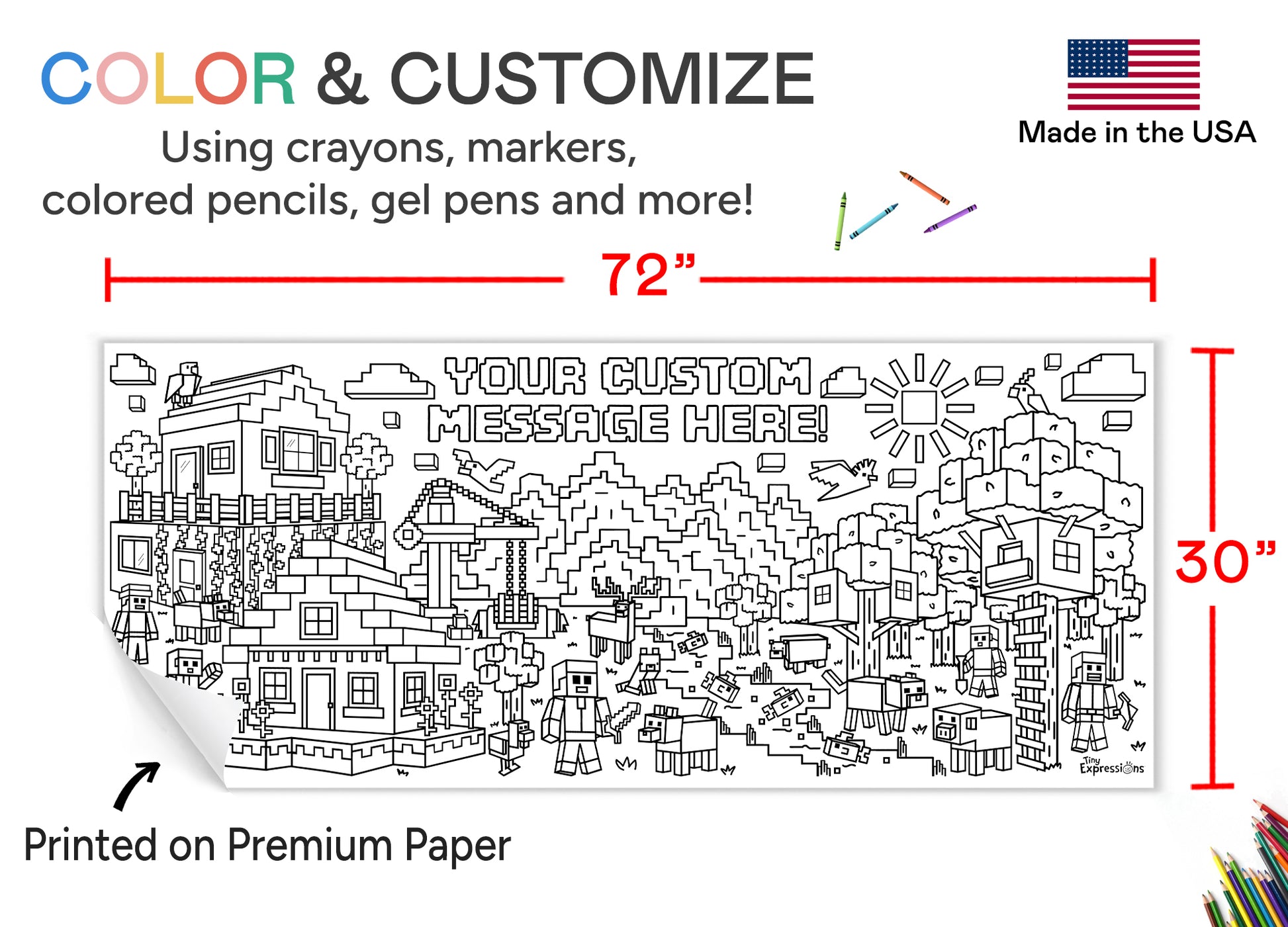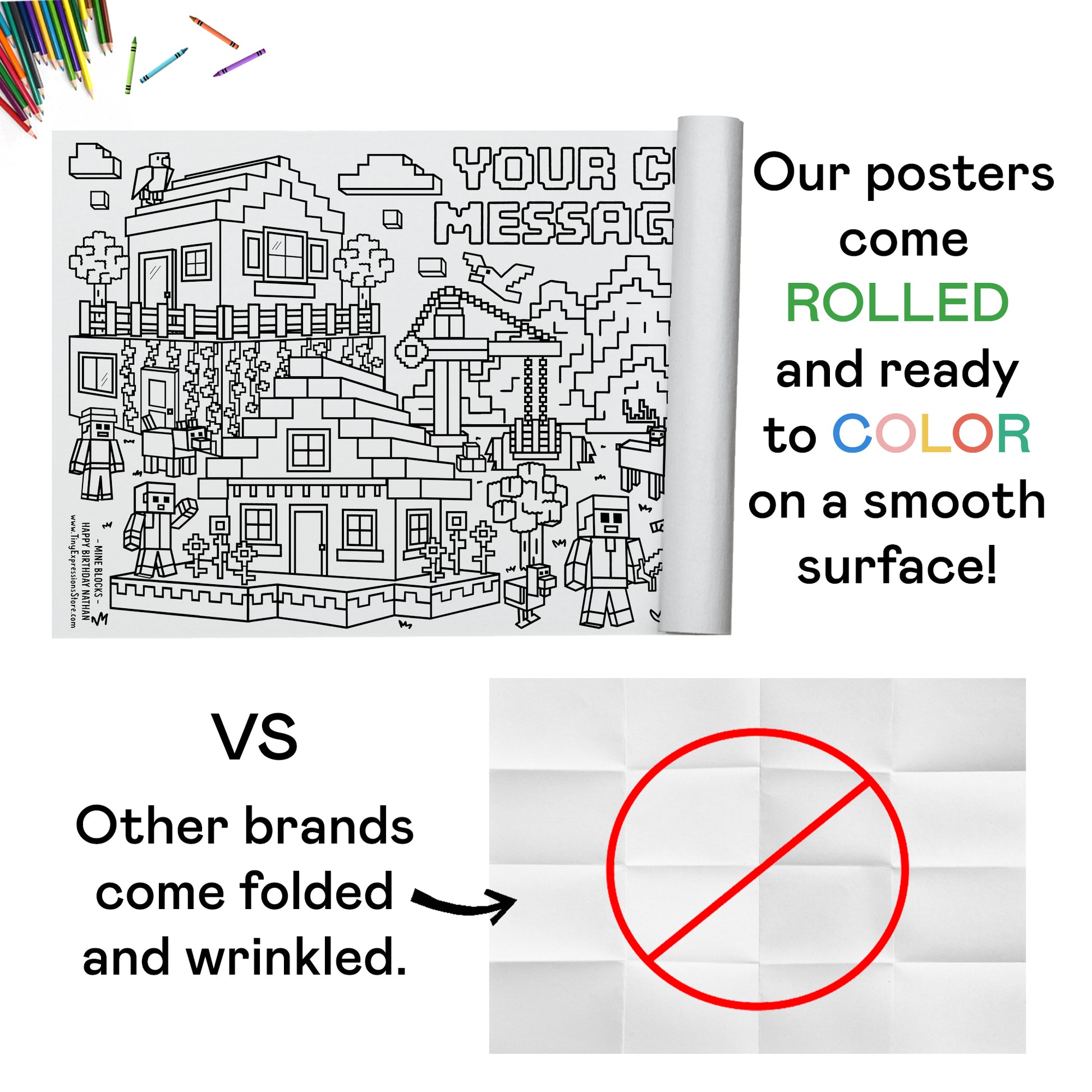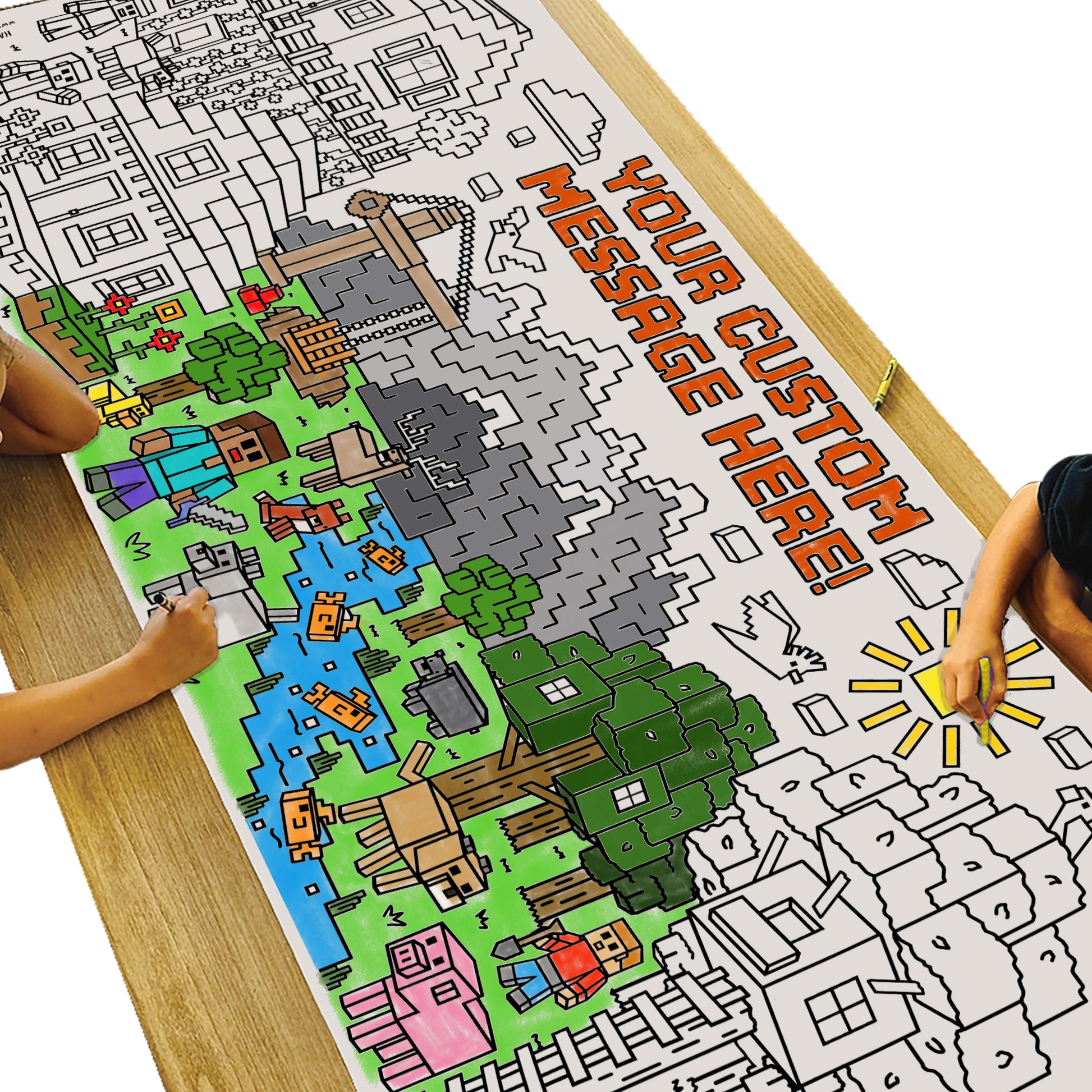MINE BLOCKS FUN - Keep kids engaged and having fun at home, in the classroom, or during a birthday party! They can custom color or paint this adorable HUGE banner and be entertained for hours.