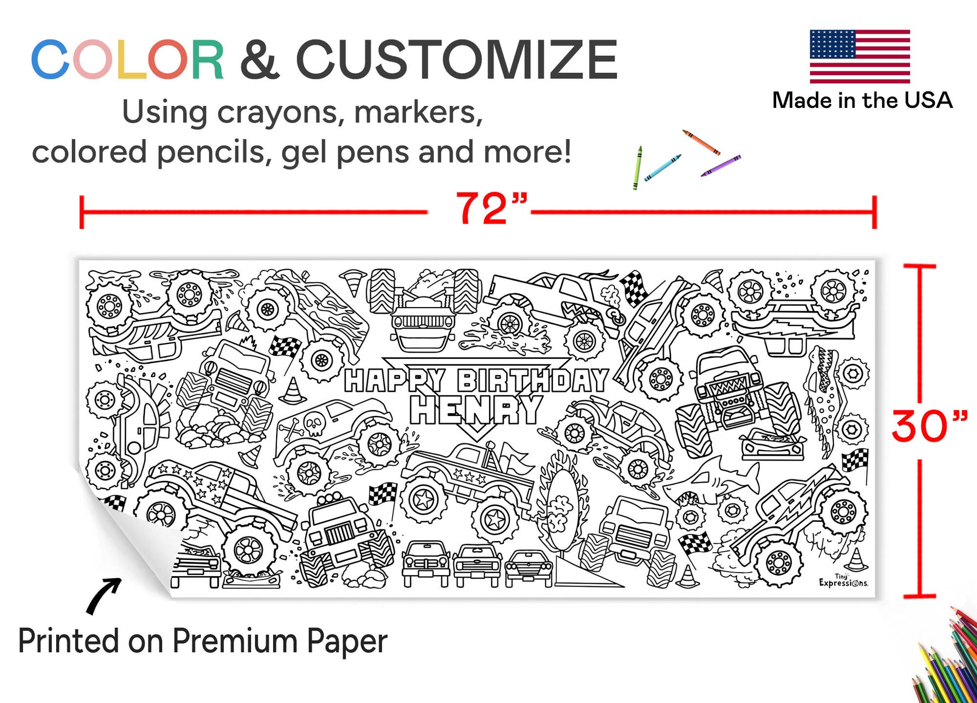 PREMIUM PAPER- We use high-quality paper that is thick enough to withstand bleeding through of markers or acrylic paint. Our coloring banners are proudly made in the USA.