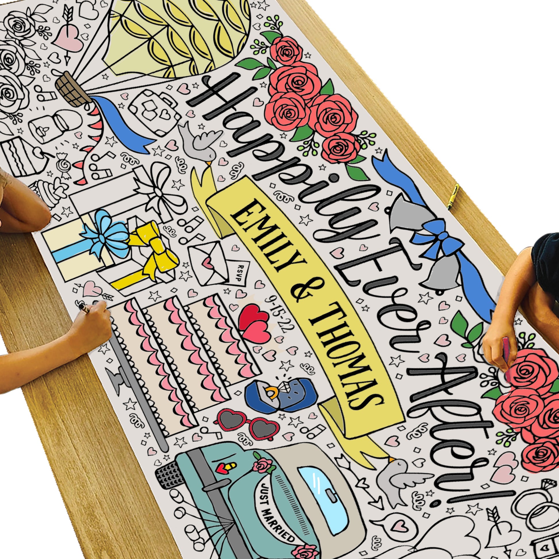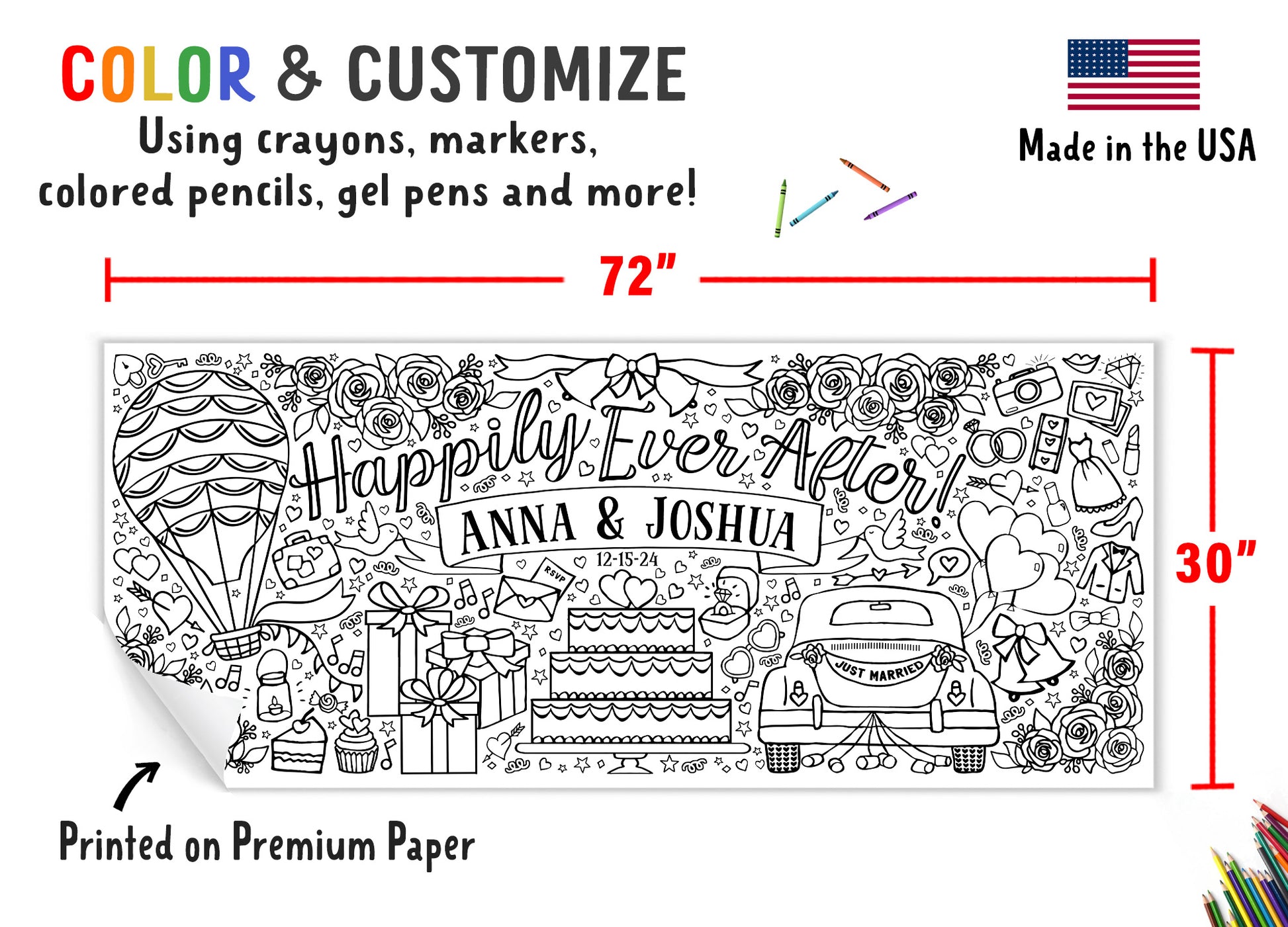 - WEDDING OR BRIDAL SHOWER FUN - Keep young guests entertained during your wedding reception while they color this adorable wedding banner. Looking for an activity for a bridal shower? Guests of all ages can spend time coloring our Happily Ever After banner.